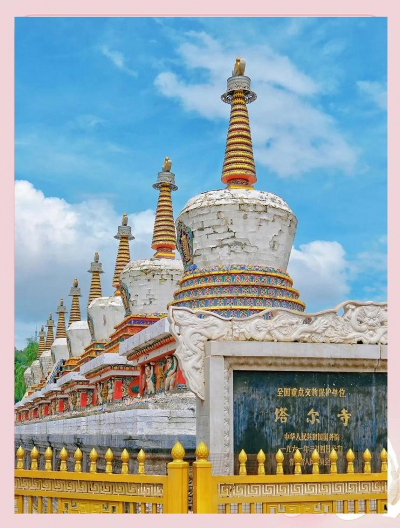 上午,第一站是塔尔寺,它位于青海省湟中县鲁沙尔镇南面的莲花山中,距西宁25 公里左右。一下车,远远望去,塔尔寺在群山环抱之中,显得庄严肃穆。随导游踏入寺内,浓郁的宗教氛围扑面而来。塔尔寺与西藏的甘丹、哲蚌、色拉、扎什伦布寺和甘南的拉卜楞寺并称为我国藏传佛教格鲁派六大寺,是格鲁派僧人和信教群众的宗教活动中心之一。寺内的壁画、堆绣和酥油花被誉为艺术三绝,令人叹为观止。