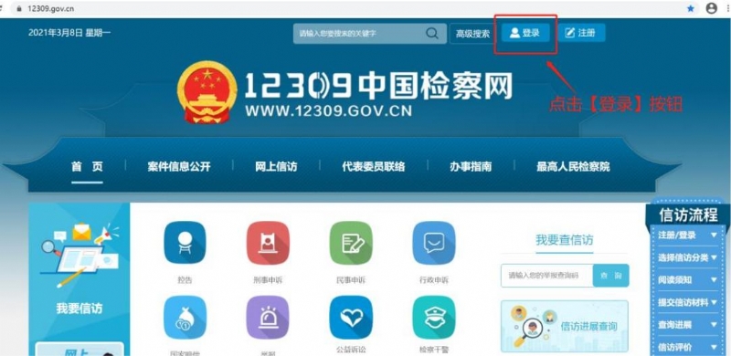 第二步:搜索“12309中国检察网”,点击上方“登录”按钮进入登录界面,输入手机号码及验证码,或使用“中国律师身份核验”平台的扫一扫功能登录。