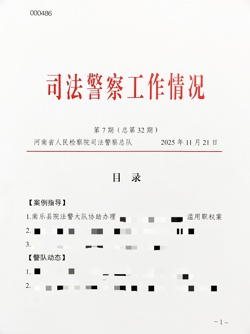 2025年11月21日,河南省人民检察院司法警察总队发布第7期(总第32期)《司法警察工作情况》。我院法警大队协助办理的一起司法工作人员滥用职权案被省院作为执警案例指导发布。